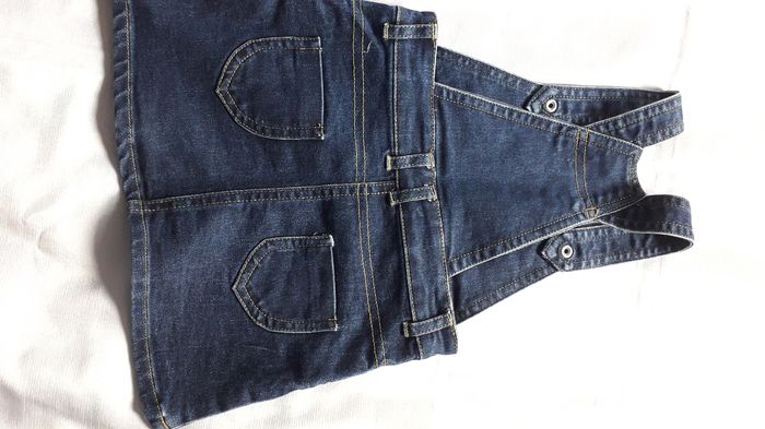 Robe salopette en jean bleu marine 12 mois 72% coton - 27% polyester - 1% élasthanne Portée 2 fois