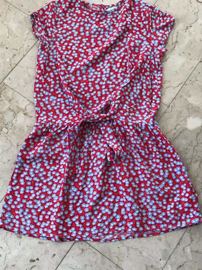Ras le cou petites manches Taille basse élastiquée avec noeud Petite ouverture au dos avec bouton 100% viscose Très bon état Taille : 10 ans