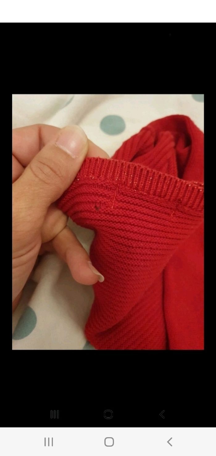 Juste un petit trou en haut derrière je pense que j ai enlevé l étiquette d achat trop fort. Couleur rouge foncé