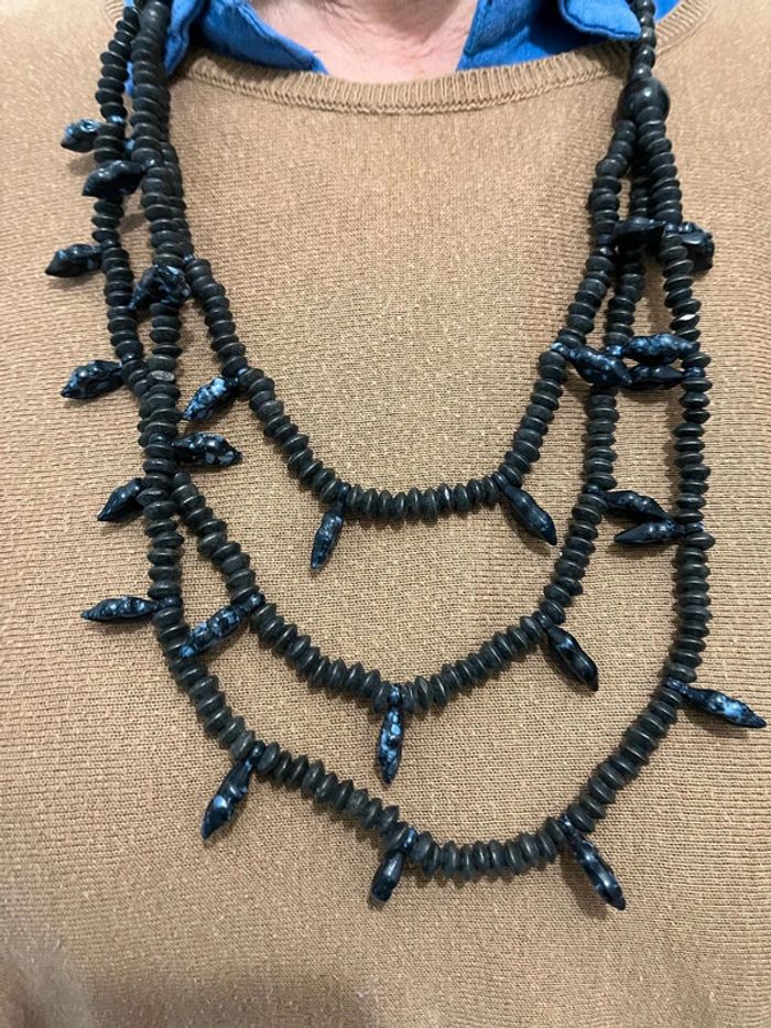 Collier fantaisie  noir 3 tours - photo numéro 1