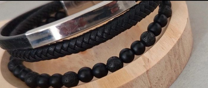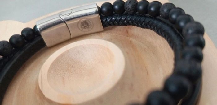 Bracelet en pierre volcanique, acier inoxydable et cuir - photo numéro 7