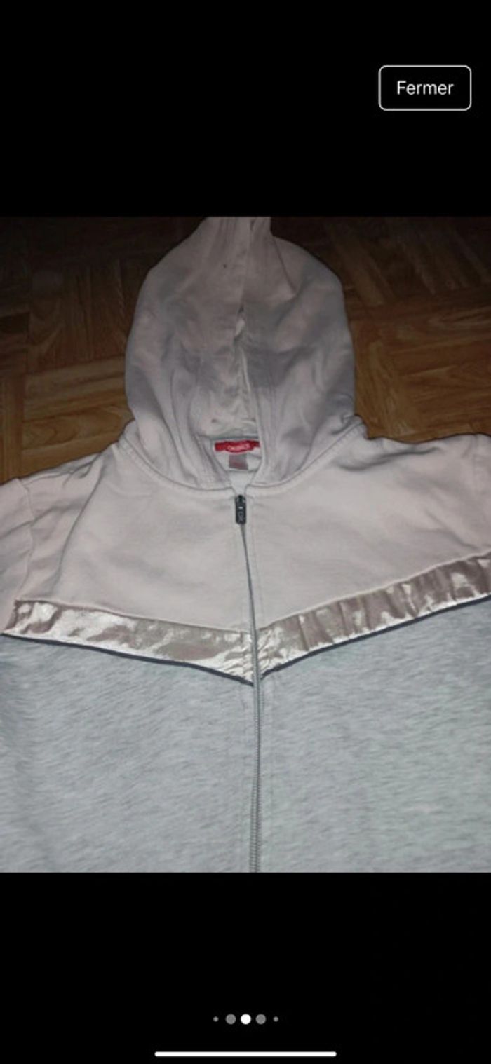 Veste Okaïdi sport en très bon état fille taille 12 ans Achetée une vingtaine d'euros en magasin Okaïdi Couleurs : rose pâle et gris clair