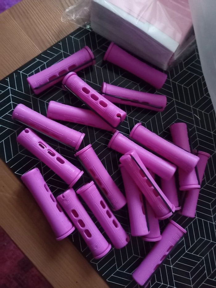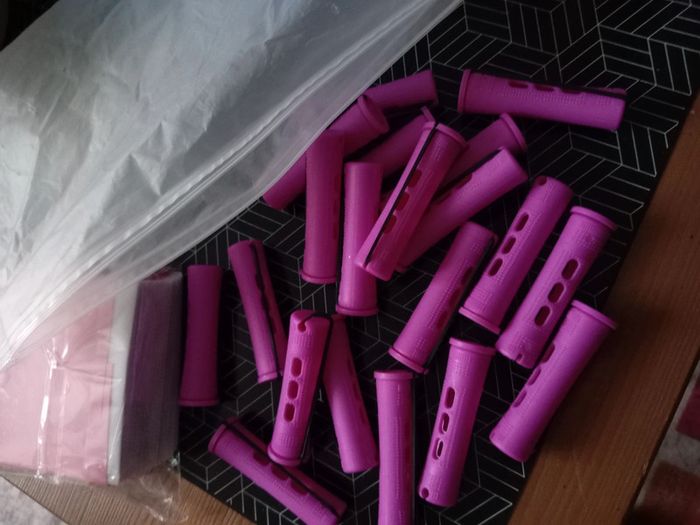 Sac de bigoudis en plastique avec élastique . ( Je vends des petits papiers neuf qui vont avec sur mon dressing ) Neuf 🌸