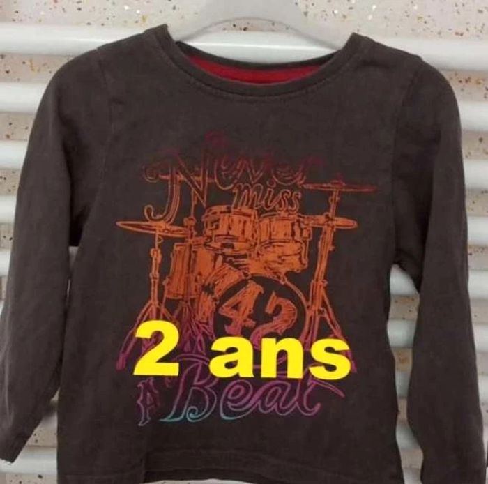 Tee shirt manche longue marron motif multicolore Orchestra Taille 2 ans #sycaro35 #sycaro352ans #taille2ans #teeshirt #manchelongue #marron #multicolore #orchestra A8158