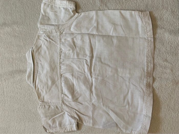 👕 Chemise blanche Petit Pirate 23M 👕 🌟 Élégance et confort pour votre petit aventurier ! La chemise est de couleur blanche avec une texture légèrement texturée. Elle possède un col classique et se ferme à l'avant avec des boutons assortis. 🧵 Les manches sont courtes, idéales pour la saison estivale, et présentent un détail de bouton sur les épaules. Elle dispose de deux poches à rabat sur la poitrine. Le tissu est composé de 51% coton et 49% lin, procurant douceur et respirabilité. 🌿 L'étiquette affiche une taille de 23M correspondante à la marque Petit Pirate. Aucune imperfection visible n'est notée. Les finitions et les coutures sont propres. Aucune décoloration notable. - 📏 Taille : 23M - 🏷️ Marque : Petit Pirate - 🌿 Matières : 51% coton, 49% lin - 🎨 Couleur : Blanc - ☀️ Parfait pour : Toutes les occasions décontractées 🛒 Cette chemise blanche est idéale pour une sortie en famille au parc. 🎉 Associez-la à un short en jean pour une tenue estivale. 🌈 Parfaite pour une journée à la plage avec un chapeau léger.