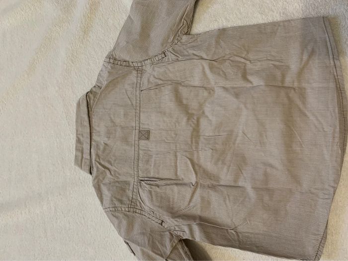🧥 Chemise à rayures Kidkanaï 🧥 🌟 Un ajout adorable pour une garde-robe stylée ! La chemise affiche des rayures fines dans des tons de beige. Elle possède deux poches avant avec des rabats et des boutons marron. Le bas de la chemise présente une broderie "ALL NATURE" sur le côté droit. 🧵 Le col est classique et structuré, ajoutant une élégance simple. Doublure en tissu doux pour un confort accru. Les manches sont longues avec des poignets boutonnés. 🌿 - 📏 Taille : 2ans /86 cm - 🏷️ Marque : Kidkanaï - 🌿 Matières : 100% coton - 🎨 Couleur : Beige à rayures - 📦 État : Très bon état Optez pour une tenue comfortable et branchée en associant cette chemise avec un jean et des baskets pour une journée décontractée. Déployez tout le style de votre enfant avec cette chemise lors d'une sortie en famille, combinée à un pantalon chino et des mocassins. Parfaite pour les occasions spéciales comme les anniversaires, cette chemise se mariera à merveille avec un short léger et des sandales. #Kidkanai #ChemiseEnfant #ModeEnfant #ChemiseRayée #VêtementsEnfant #LookStylé #ModeÉco #ChemiseCoton #StyleDécontracté #VêtementsGarçon #ChemiseÉlégante #LookBranché #TenueStylée #GardeRobeAdorable #ModeÉthique