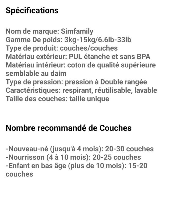Bonjour vend couche lavable neuve avec insert en fibre de bambou. Prix de vente 7e00 pièces 6e00/pièces si lot de 6=36€/6 5€/pièces si lot de 12 = 60€/12. J'ai en ma possession 24 couches lavables avec 24 insert dont 6 fibre de bambou et 18 insert microfibre. Prix non négociable. Si lot merci de m'avertir que je fasse le prix. J'ai des modèles en double voir triple c'est pour cela que vous pouvez voir plusieurs annonces du même modèle. • La microfibre: La microfibre est une fibre synthétique. Elle est souvent utilisée dans les couches lavables car elle a comme capacité d’absorber très rapidement, ce qui est parfait en cas de gros pipi! Elle a aussi un autre avantage: elle sèche rapidement, ce qui permettra de tourner plus simplement avec moins de stock de couches lavables. Elle est résistante, lavable à 60°C et garde un aspect plutôt doux et moelleux. Bien que cette fibre ait quelques avantages, elle a aussi quelques inconvénients: elle absorbe très rapidement, mais elle absorbe peu en quantité, il faudra donc doubler l’absorption en cas de gros pissouilleur. C’est une fibre synthétique fabriqué par la synthèse de composés chimiques. Elle est fabriquée à partir de plastique fondu, puis transformée en fils. A chaque lavage des micros-fibres se détachent et se retrouvent dans les océans. On changera également bébé plus souvent mais les inserts sèchent rapidement sans sèche linge. C’est donc une fibre issue du pétrole, mais cela reste une matière réutilisable et donc plus écologique qu’une couche à usage unique. • Le bambou: Les tissus en bambou proviennent d’une viscose fabriquée à partir de fibres naturelles de bambou. Elle est peut être considérée comme fibre synthétique puisqu’elle nécessite un traitement pour obtenir de la viscose: le bambou est traité à la soude caustique et à l’hydroxyde de soude. Ceci fournit une pâte visqueuse qui est poussée à travers une plaque métallique percées de multiples petits trous. Les fibres ainsi obtenues sont enroulées pour former un fil, retravaillé ensuite pour en faire du tissu. En ce qui concerne son utilisation dans les couches lavables, c’est une fibre particulièrement appréciée puisqu’elle a une grande capacité d’absorption: 4 fois plus absorbant que le coton! Au niveau de sa rapidité d’absorption, elle est moyennement rapide: moins vite que la microfibre. Au niveau de l’entretien, on optera pour un lavage jusqu’à 60°C et séchera moins vite que le coton. Le bambou restera doux et souple malgré les lavages à répétition. Cette matière a des propriétés bactéricides (tueur de bactéries) et bactériostatique, c’est à dire qu’elle bloque le développement des bactéries.