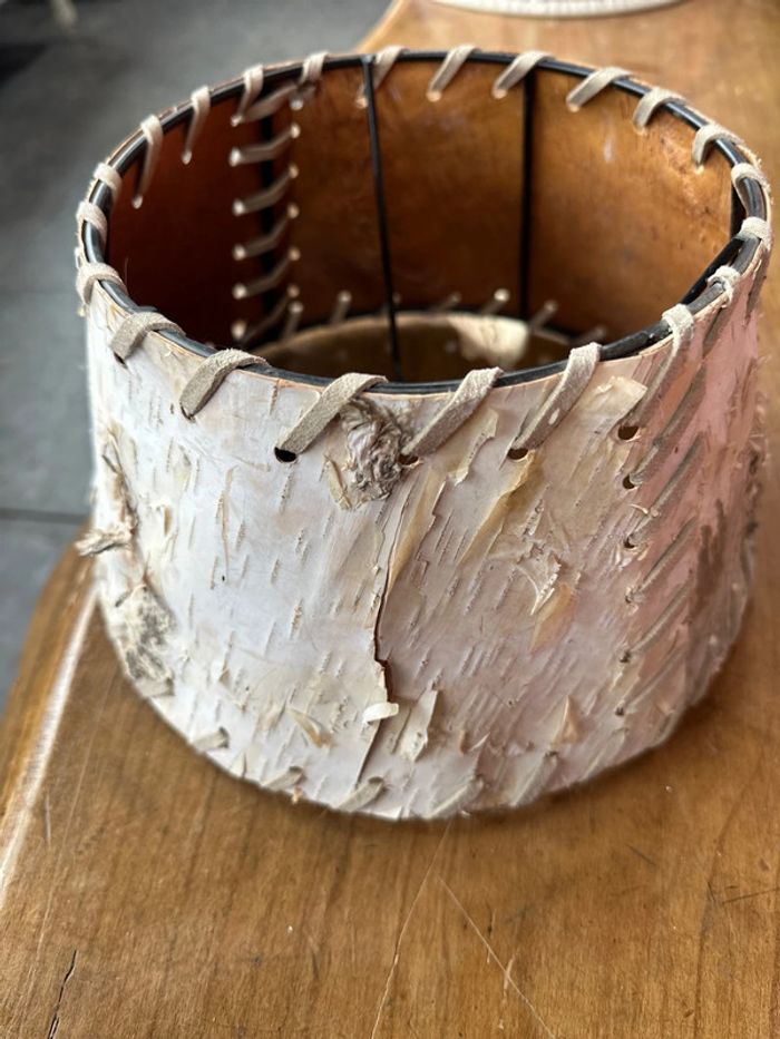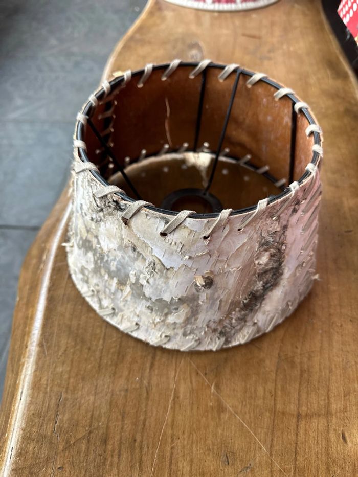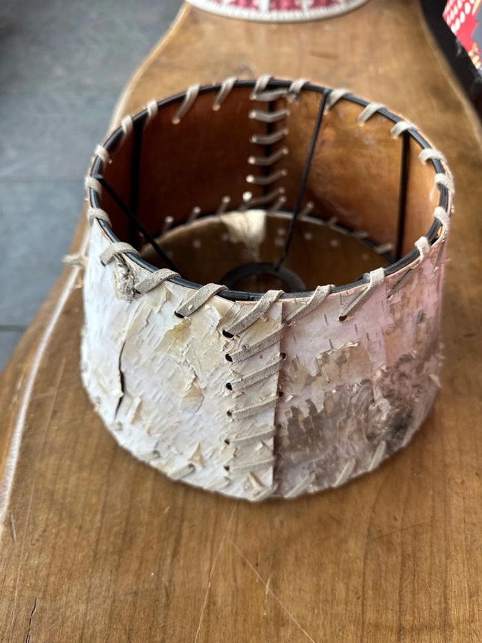 Abat jour diamètre 25 Craquage du bois sur un côté (voir photo)mais qui ne nuit pas à la qualité de l’abat jour Certainement en bouleau Acheté chez Interiors il y a 25 ans