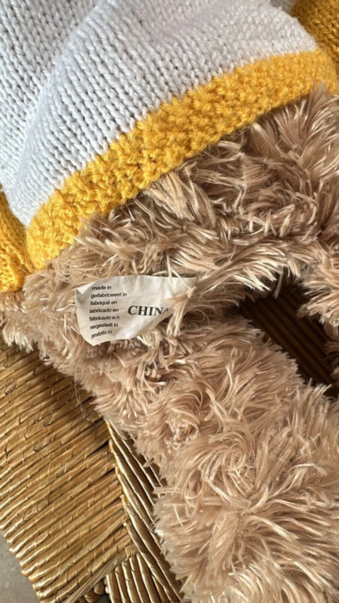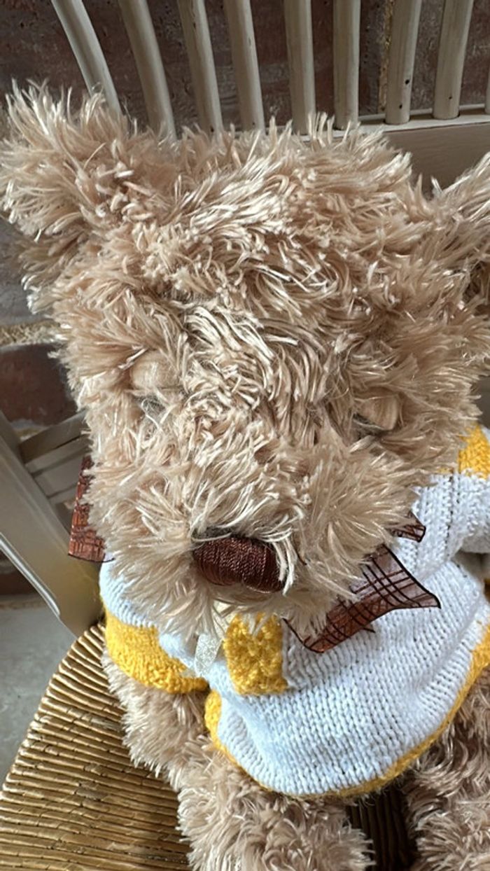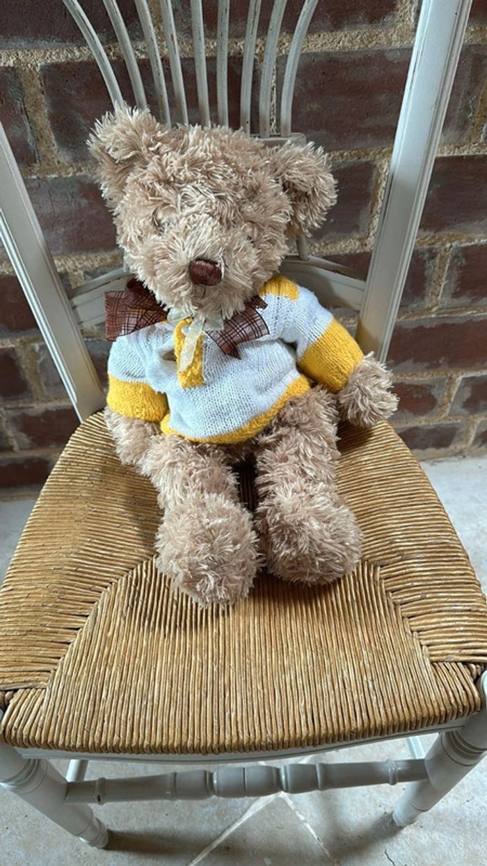 Ourson en peluche type teddybear Pull jaune et blanc Hauteur 40cm