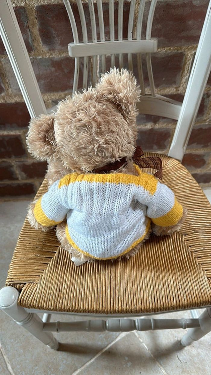 Peluche ours traditionnel avec pull jacquard jaune - photo numéro 5