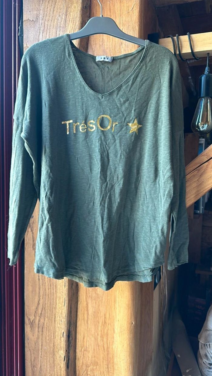 T-shirt manches longues Trésor Made in Italy- Taille unique Largeur aisselles à aisselles 62cm 95% coton 5% elasthane