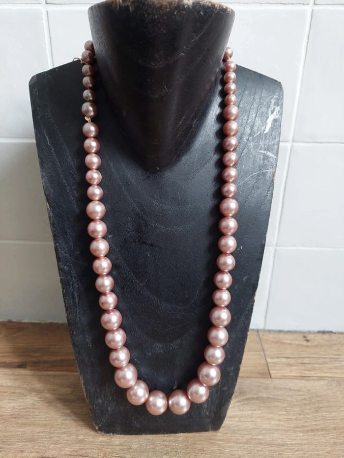 Collier perles rose 70cm vintage