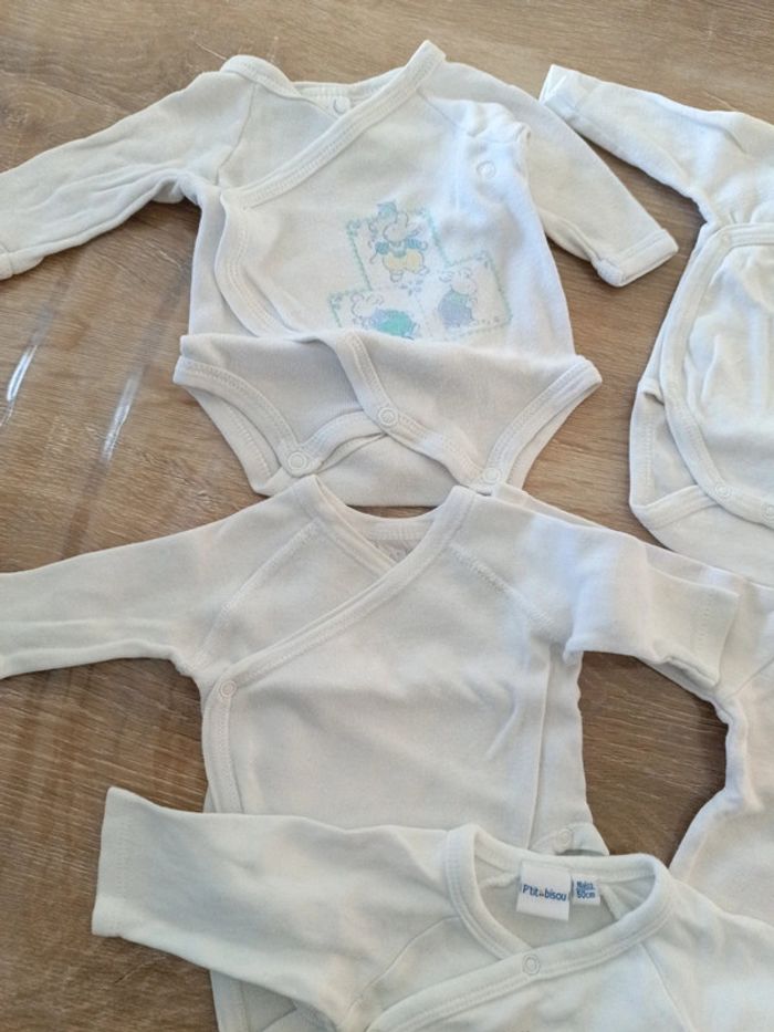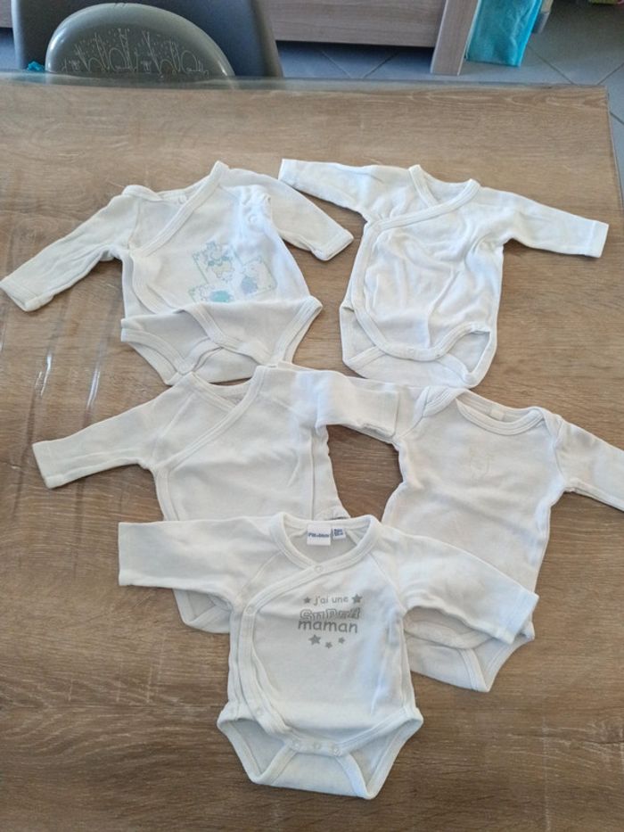 Lot de 4 bodies manches longues dont un gratuit car jauni Bien servi mais encore en très bon état Naissance #laeti1059_naissance