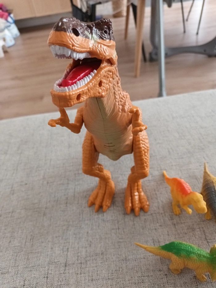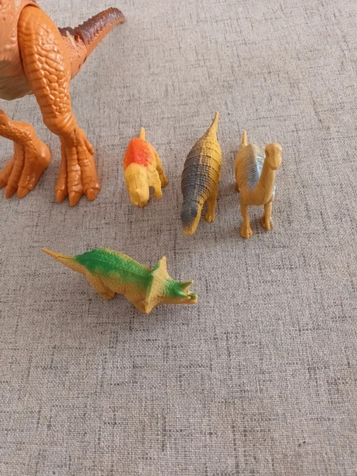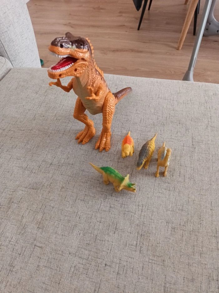 1 grand dinosaures qui fait des cris 4 petits dinosaures