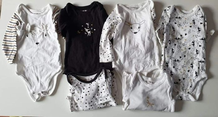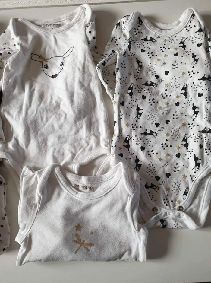 Lot de 6 body noir et blanc thème biche/cerf Taille 12 mois 74cm de chez orchestra En très bon état mais œuvrent comporter des bouloche/défaut #ludie8635_12moisfille