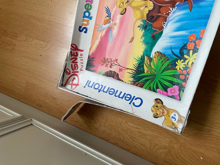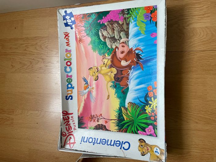 Je vends ce lot de deux grands puzzle Disney : un Le Roi Lion et un Winnie L'Ourson. Ce sont des puzzles maxis, composés de 104 pièces. Les boîtes sont assez abîmées mais les puzzles sont en bon état (certaines pièces peuvent légèrement être cornées) !