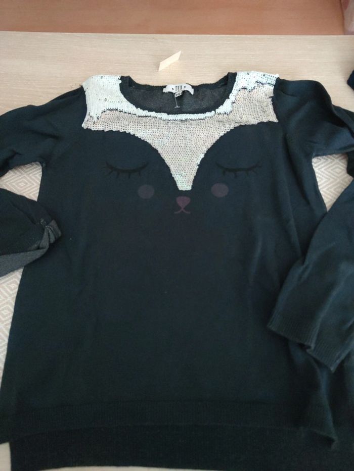 Pull fin visage sequins tex 9/10 ans - photo numéro 1