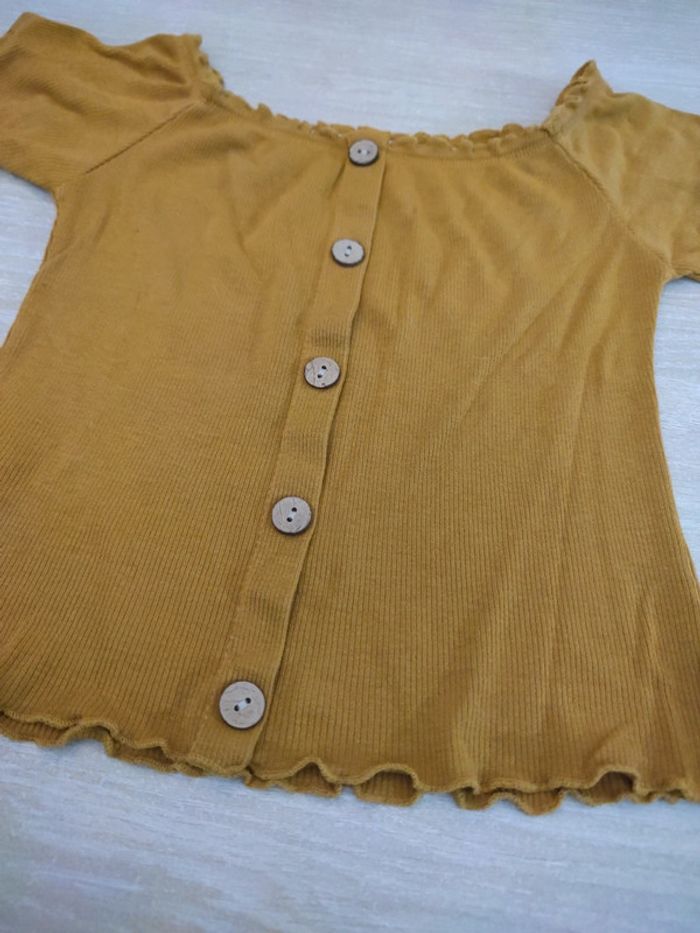 Top côtelé moutarde fluide bouton bois 12 ans - photo numéro 1