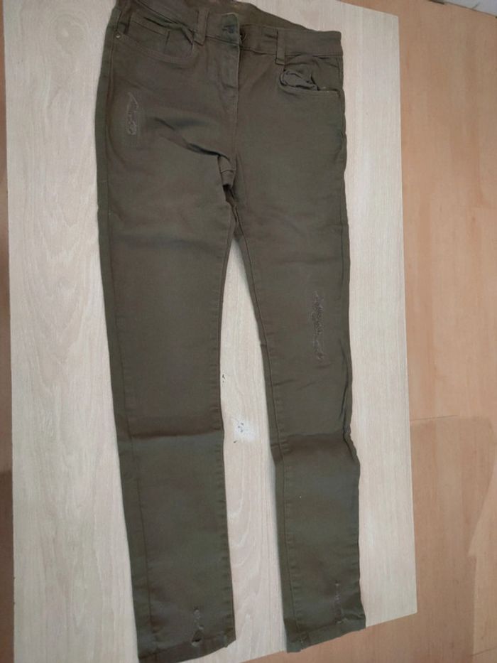 Jeans kaki slim effet usé tao 14 ans - photo numéro 1