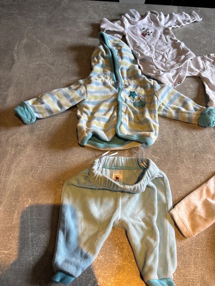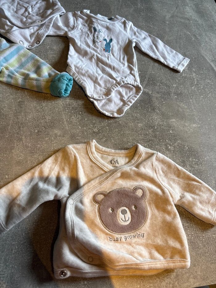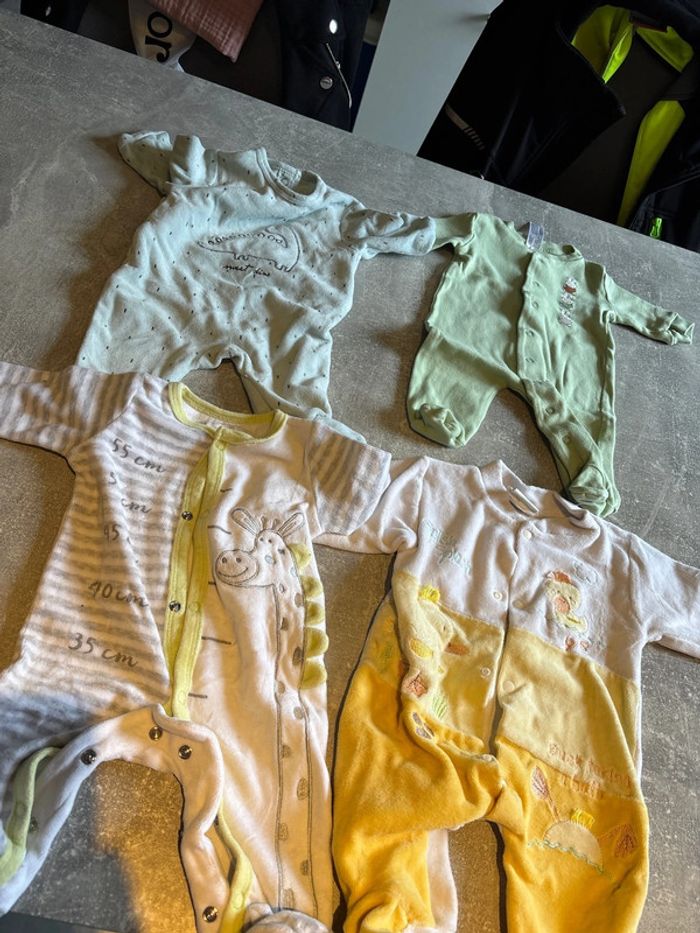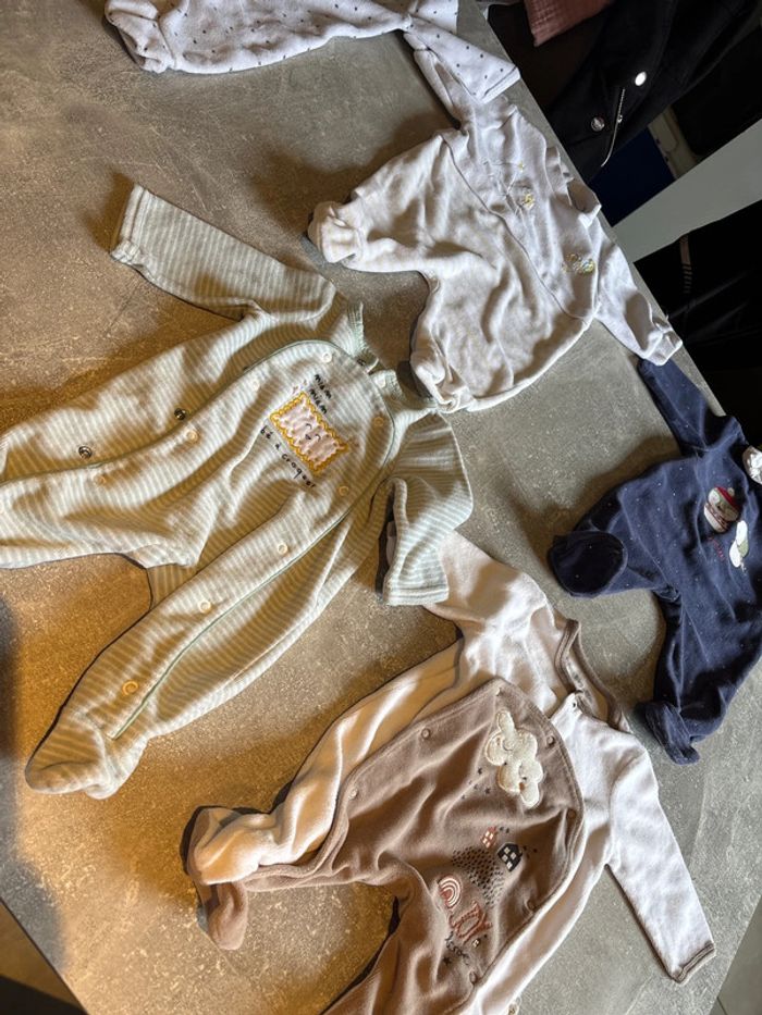 Bonjour 🌸 Je vend des vêtements garçon de 0 à 1 mois 🌸 voici se que je vend 🌸 Il y a 21 articles 1 gilet 1 petit manteau 1 sous pull Une paire de chaussettes 1 ensemble 2 body à manches longues 1 gilet ours brun 2 legging 9 pyjamas 2 pyjamas ou les pieds sont ouverts Attention il y a un pyjama abîmé photo mise 🌸 il y a de toute marque : Zeman, Orchestra, c&a, baby club , obaibi , premaman, tape-à-l’œil,gemo , SHEIN, petit béguin bio , Kiabi, et autre