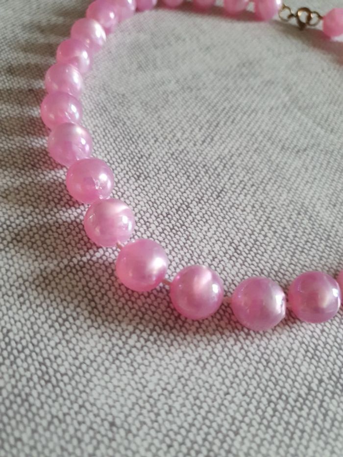 Collier 40 cm en perles fantaisie rose. Collier fantaisie neuf. Nombreux bijoux dans ma vitrine. Réduction sur les lots activée.