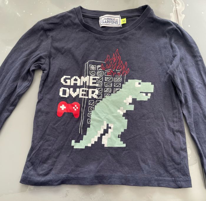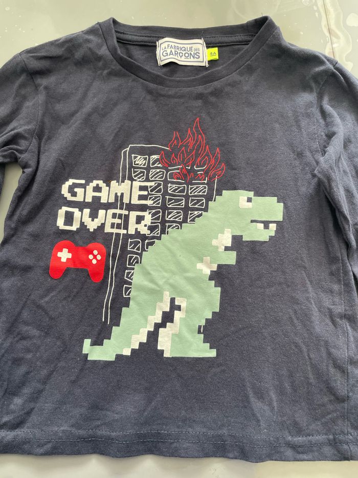 Tee-Shirt T 4 ans La Fabrique des Garçons Couleur bleu marine avec joli dessin dinosaure 🦕 à manches longues Très bon état