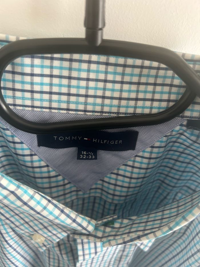 Chemise Tommy Hilfiger Classic Taille: 16-1/2 = L Adult Couleur: bleu ciel clair à carreaux Neuf sans étiquette Jamais porté Logo brodé au niveau des manches Col boutonné Plein de détails Très belle pièce Fidèle aux photos 100% coton Expédition sous 24h