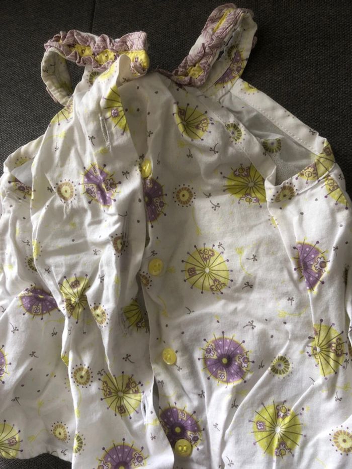 - 1 jaune et mauve à motif fermeture à bouton tt le long du dos