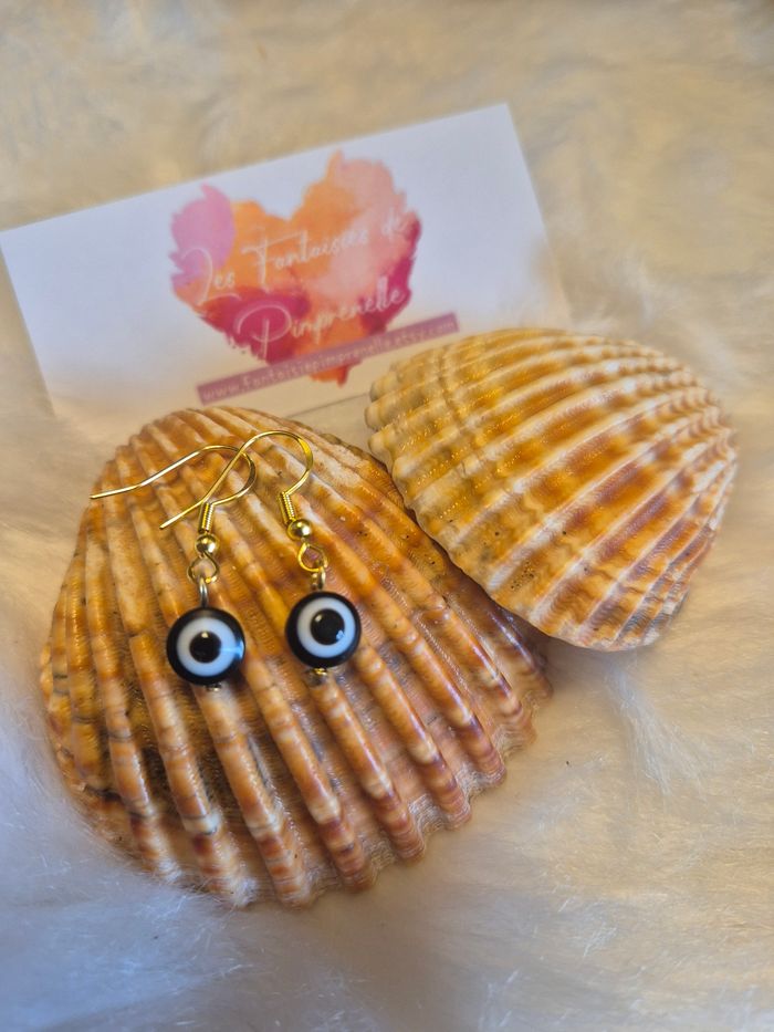 Boucles d’oreilles œil Couleur noir et blanc Crochets en argent 925 doré