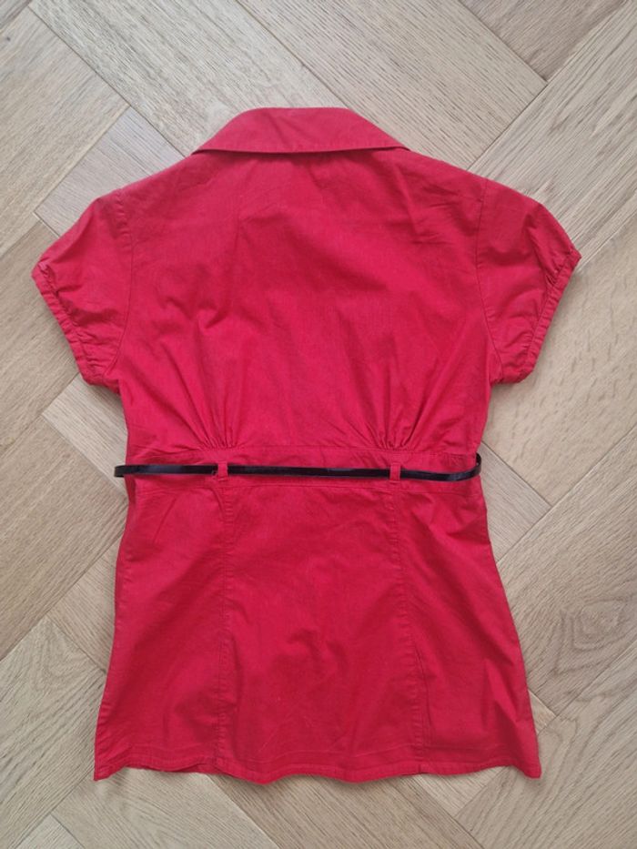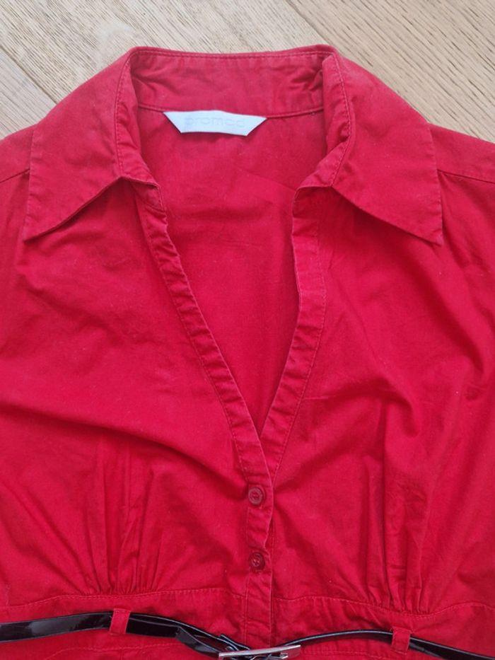 Chemisier de marque Promod ; Ton rouge ; Taille 38 ; En très bon état ( ceinture plus marqué au niveau des plis à l endroit où elle se boucle, c est très léger : voir photo) #taille38_louanne59430