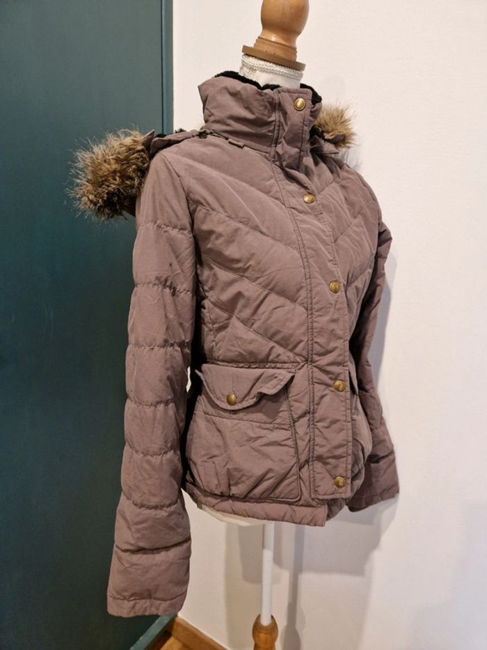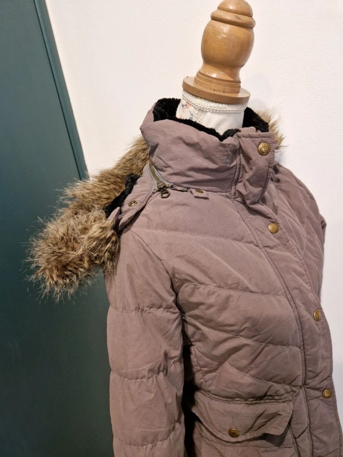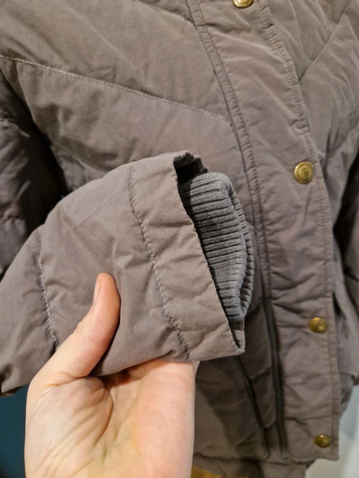Si vous souhaitez créer un lot, les réductions sont activées 😊 : #arenascFemmeTailleS Abimé sur une des manches: déchirures (dernière photo) + 1 défaut/tâche près de la fermeture éclair. Doudoune marron. Capuche fourrée noire amovible. Bien chaude: 80% duvet, 20% plumes . Marque: Ralph Lauren.