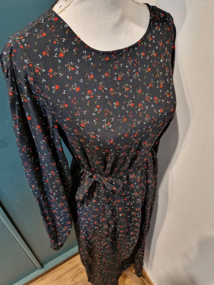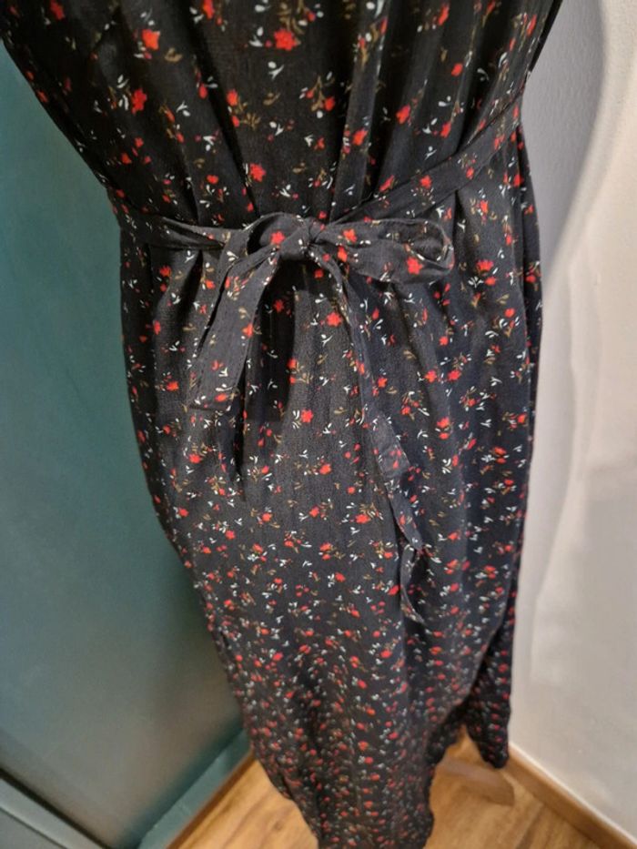 Si vous souhaitez créer un lot, les réductions sont activées 😊 : #arenascFemmeTailleL En excellent état, ni trou, ni tâche. Robe longue noire. Fleurs rouges. Cintrée grâce à sa ceinture assortie. 50% viscose. Marque: Vila.