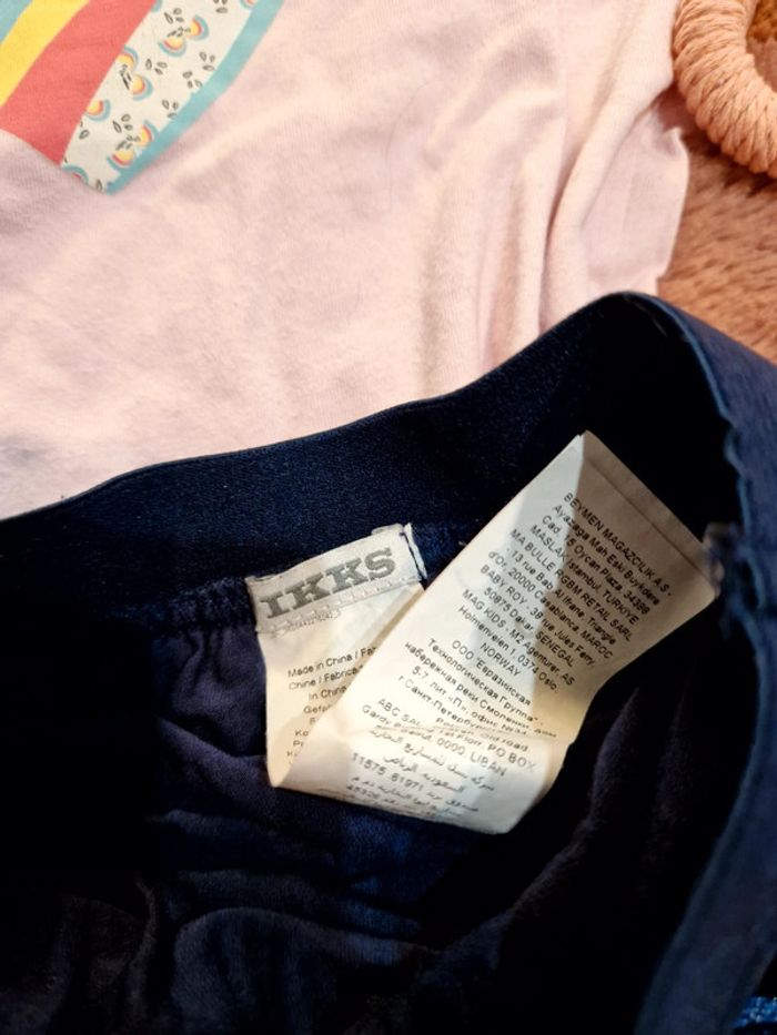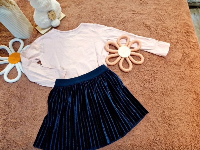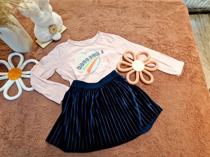 Si vous souhaitez créer un lot, les réductions sont activées 😊 : #arenascFilleTaille3ans En très bon état, ni trou, ni tâche. 🌸Jupe bleue marine pailletée. Convient à un 3ans. Marque: IKKS. 🌸Tee-shirt rose. Coeur fleuri, motif liberty. Marque: In Extenso.