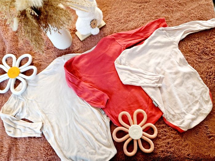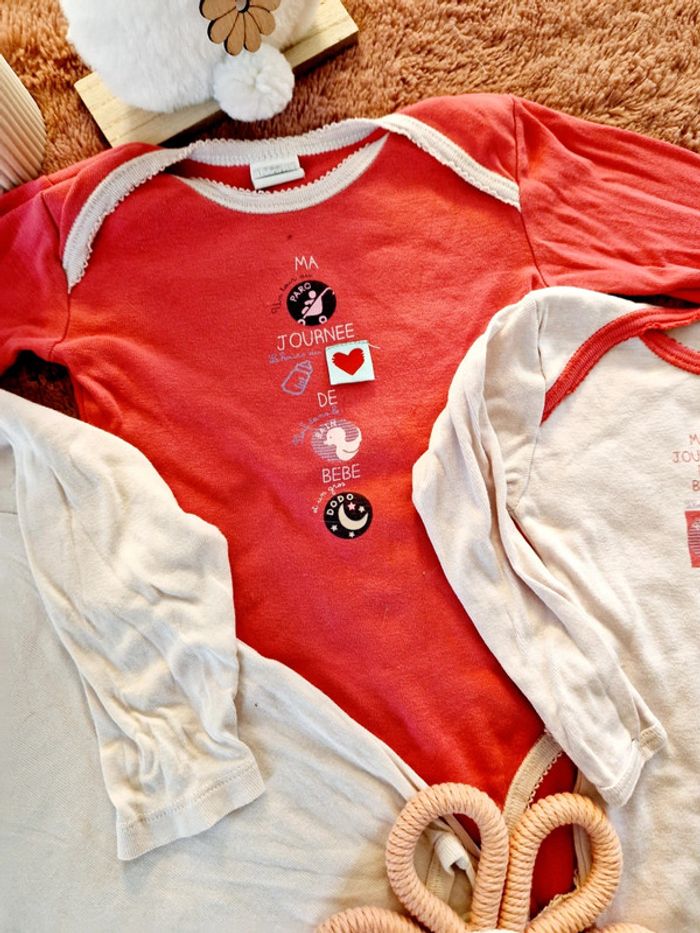 Si vous souhaitez créer un lot, les réductions sont activées 😊 : #arenascFilleTaille24mois En bon état: ils ont été bien porté, ni tâche, ni trou. Lot de 3 bodies à manches longues: ⚘️2 "ma journée de bébé". Marque: Absorba. ⚘️1 rose clair. Marque: Kiabi.