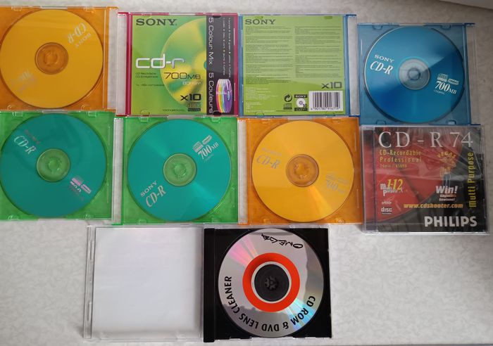 Lot de 7 cd vierges Sony 80mn (700Mb) et 1 Philips 74mn (650Mb) et 1 cd smart lens cleaner pour nettoyage lentille lecteur CD/DVD (produit de nettoyage non fournis)