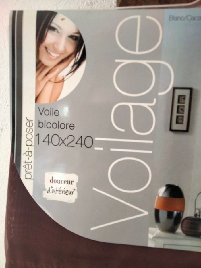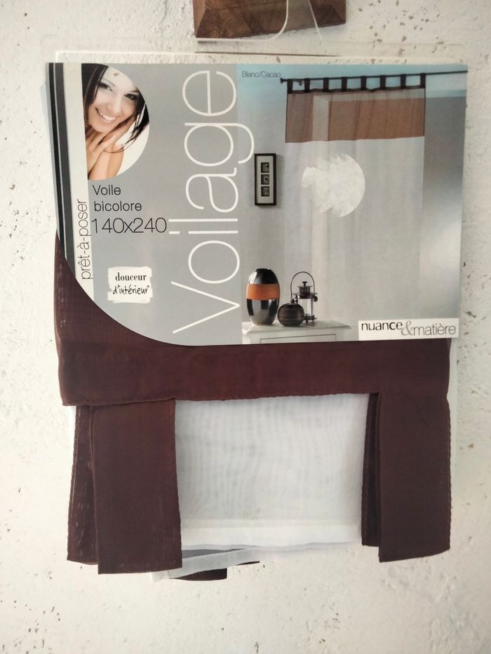Voilage bicolore blanc/cacao. Mesure 140x240 cm. Prêt à poser. Composition : 100% polyester. 5 de disponible. Neuf