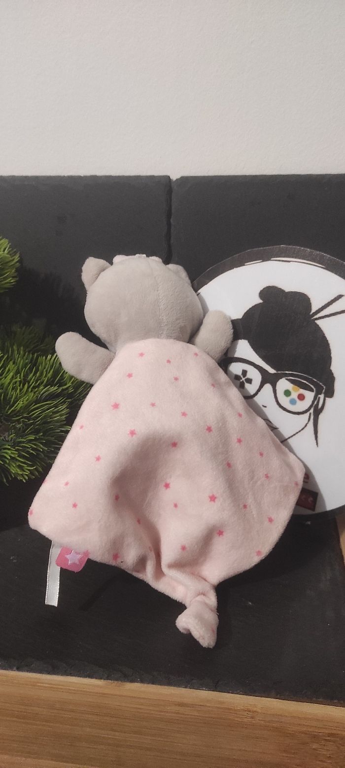 Doudou Ours rose gris Chateau Cape Sucre d Orge lune cape chat gris  blanc étoiles - photo numéro 2
