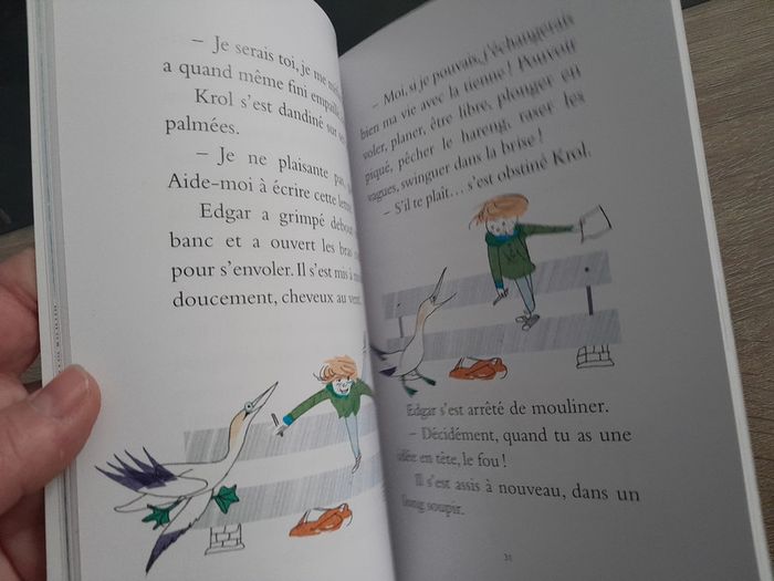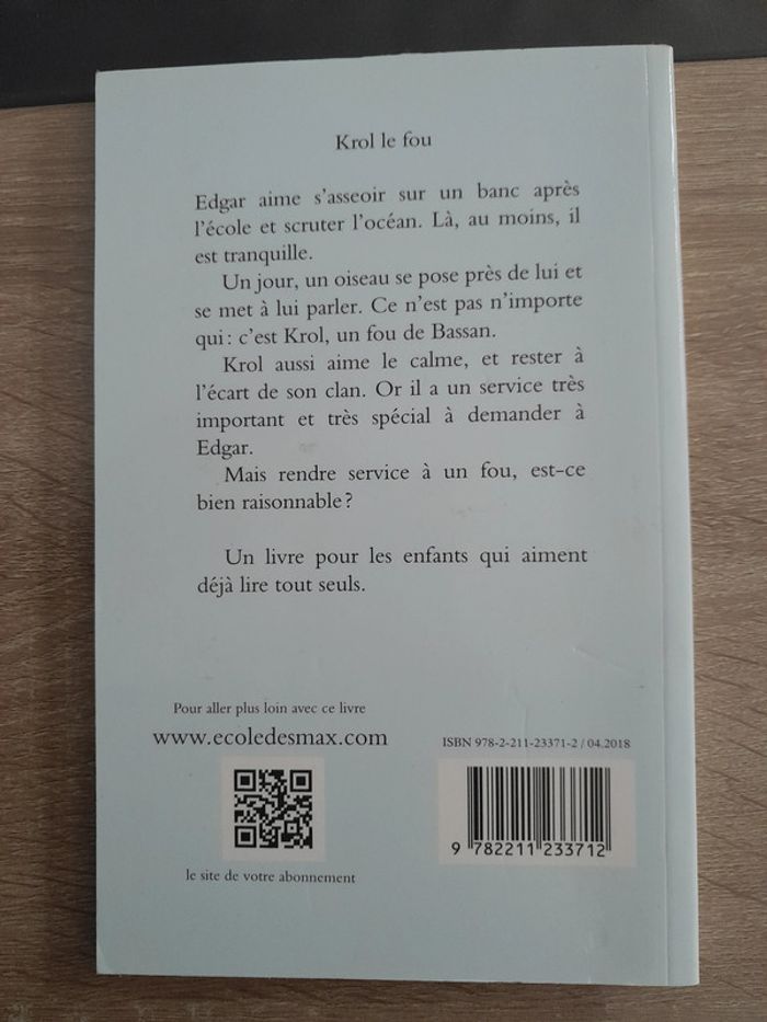 livre animax de l'école des loisirs - Krol le fou 6-8 ans #livreenfantscoubi62 Edgar aime s’asseoir sur un banc après l’école et scruter l’océan. Là, au moins, il est tranquille. Un jour, un oiseau se pose près de lui et se met à lui parler. Ce n’est pas n’importe qui : c’est Krol, un fou de Bassan. Krol aussi aime le calme, et rester à l’écart de son clan. Or il a un service très important et très spécial à demander à Edgar. Mais rendre service à un fou, est-ce bien raisonnable ?