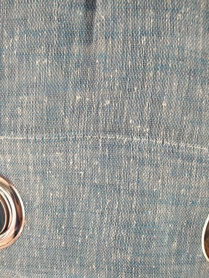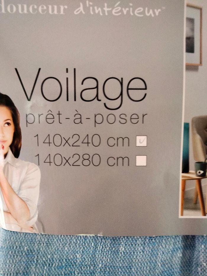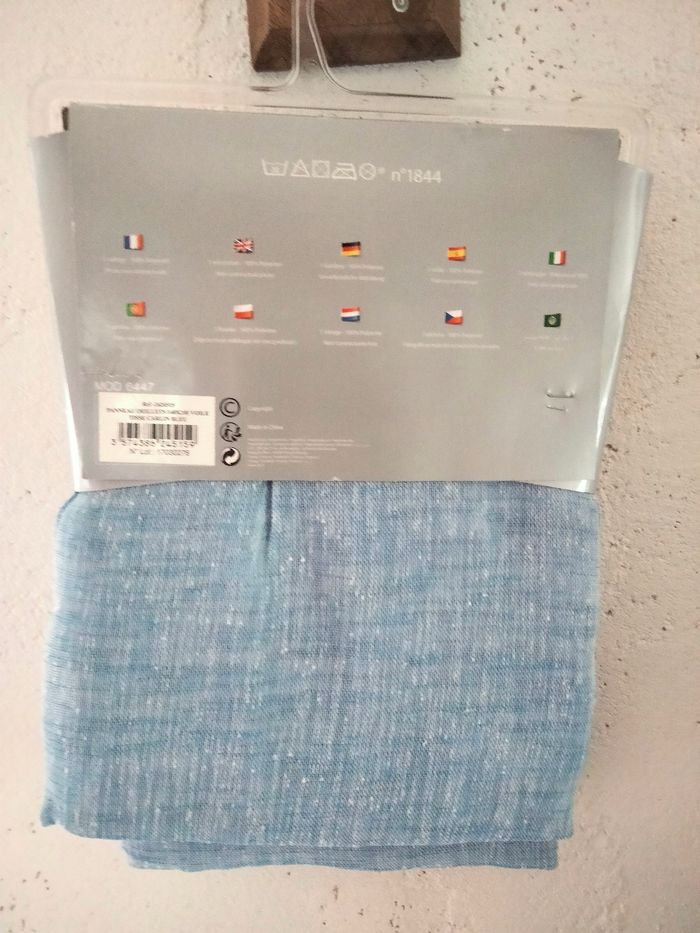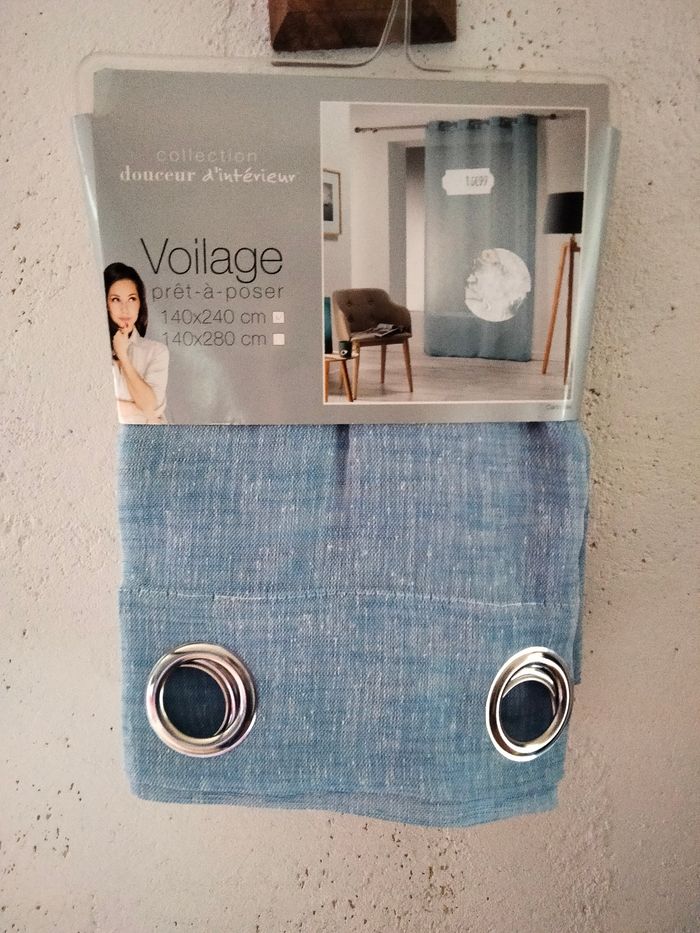 Voilage tissé carlin bleu. Avec oeillets. Mesure 140x240 cm. Composition : 100% polyester Neuf