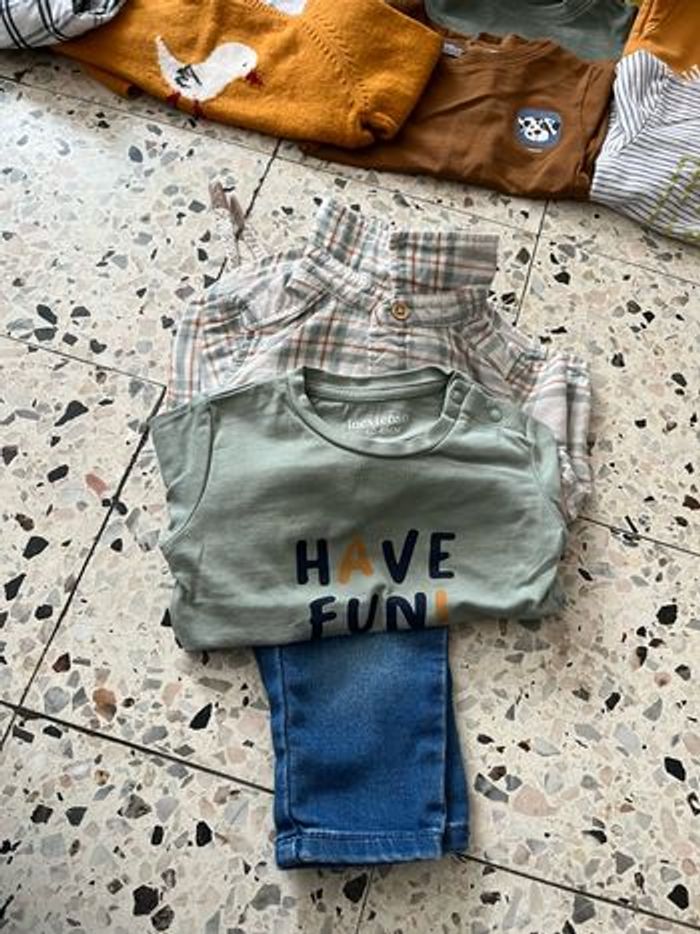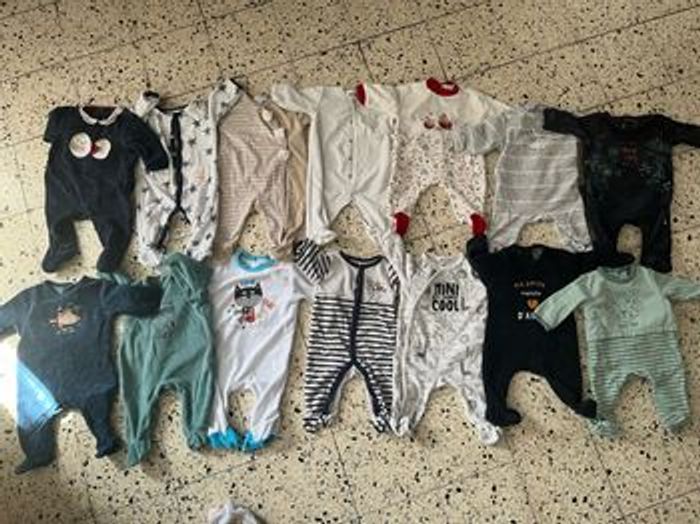 Vêtements garçons du 3 mois aux 12 mois, pyjamas velours, pyjamas coton, ensembles, chemises, bodies manche longues, tee-shirts manche longues, jeans, gilets, manteaux. Haut manches courtes shorts à partir du 6 mois Uniquement le 3 mois en photo