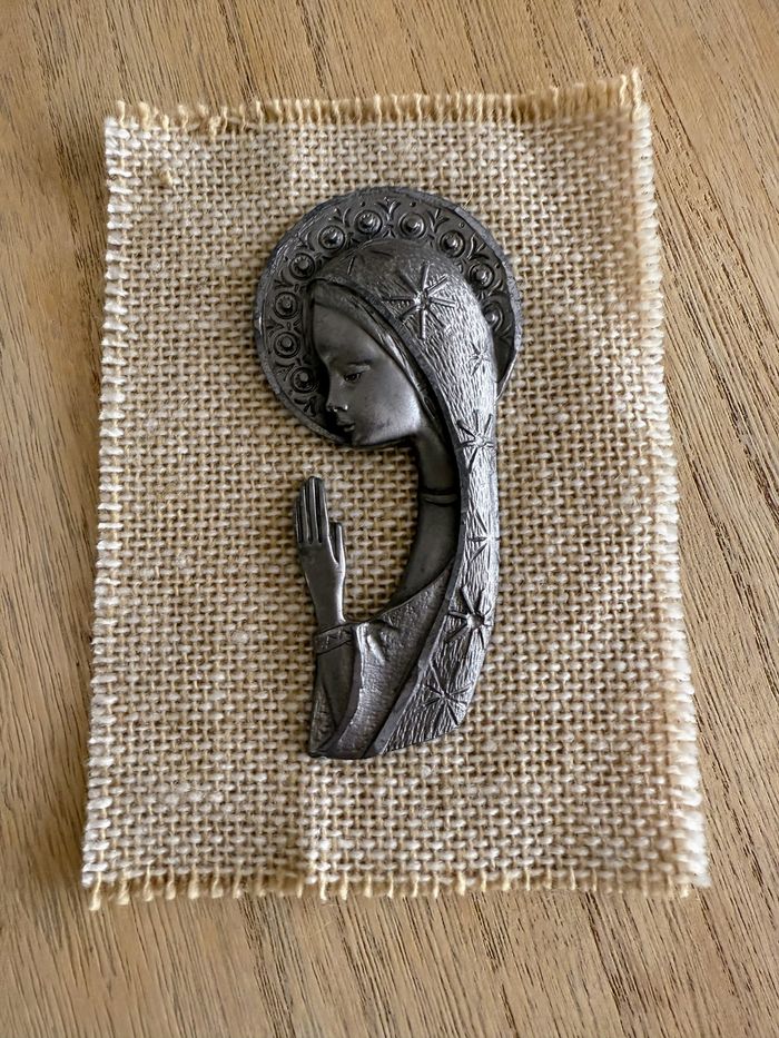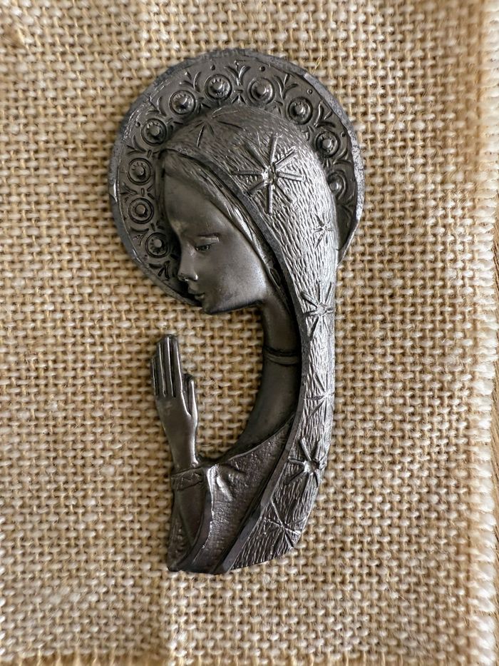 Vierge Marie en étain sur toile de jute - photo numéro 4