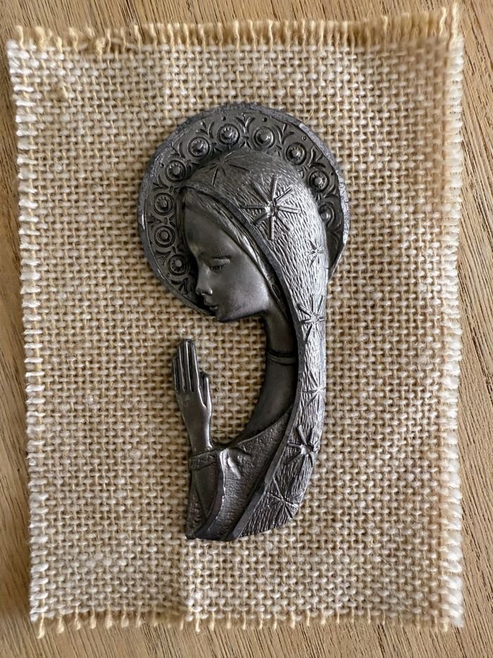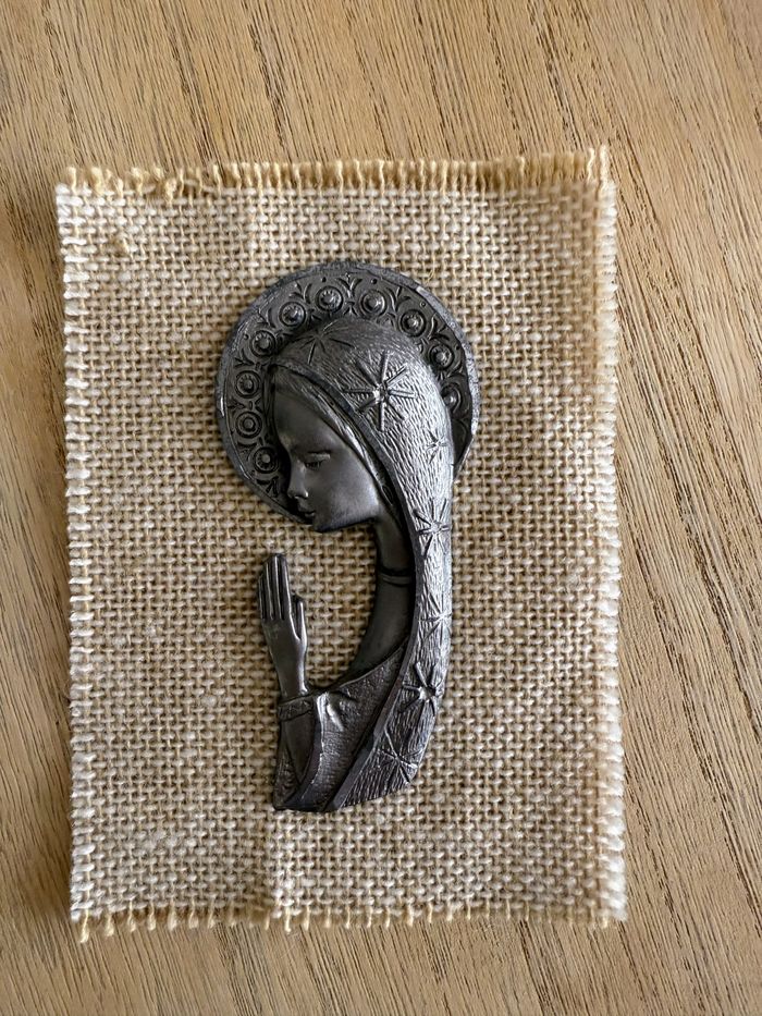Vierge Marie en étain sur toile de jute - photo numéro 1