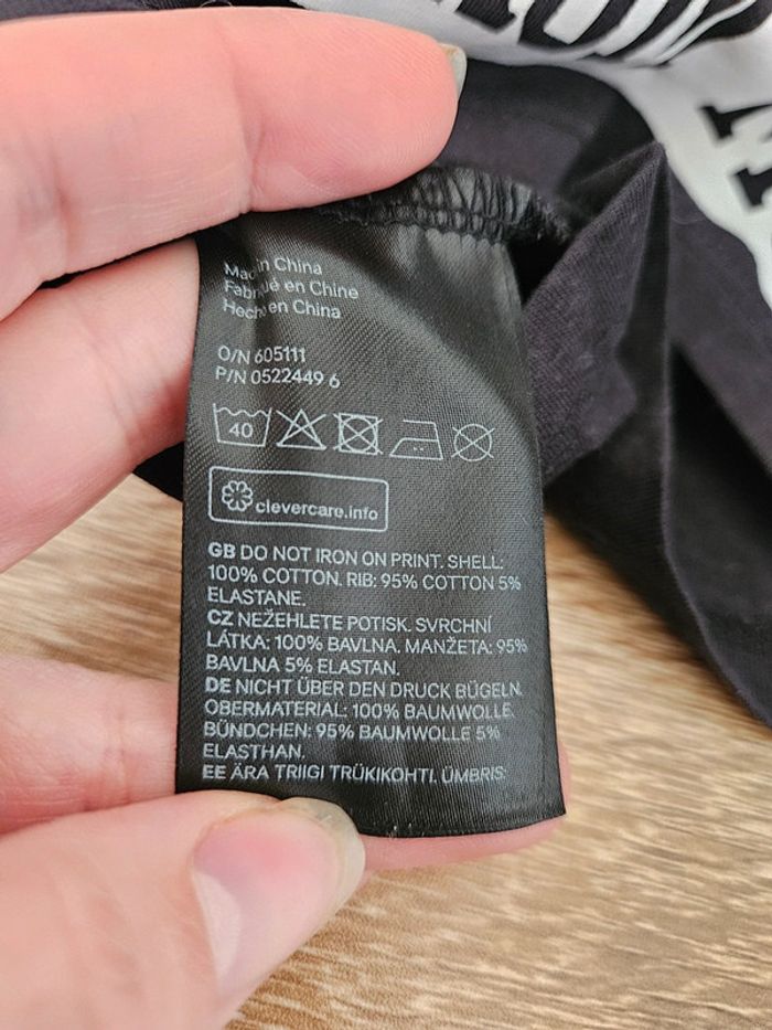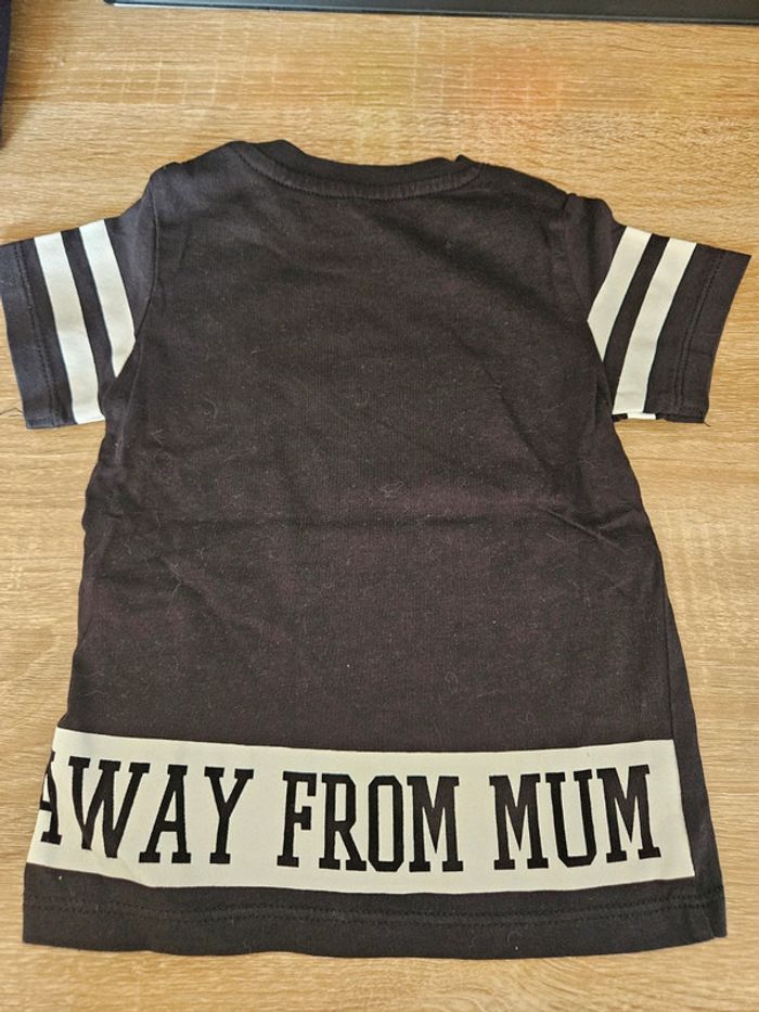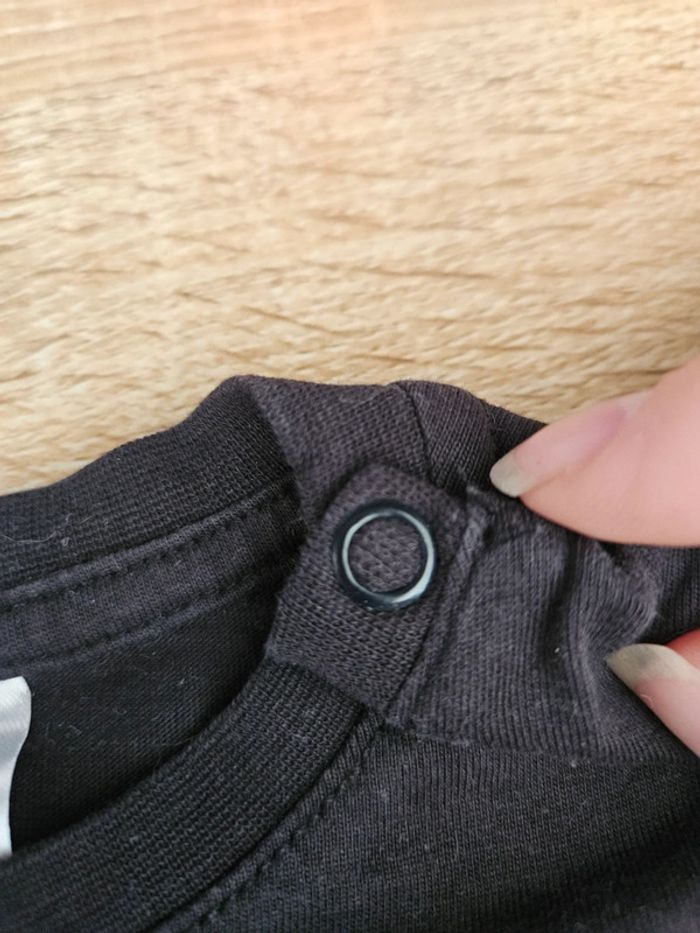 T-shirt noir 74cm en très bon état. 1 bouton pression à côté du cou afin de faciliter le passage de la tête de bébé. 100% coton. Envoi rapide.