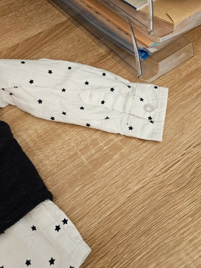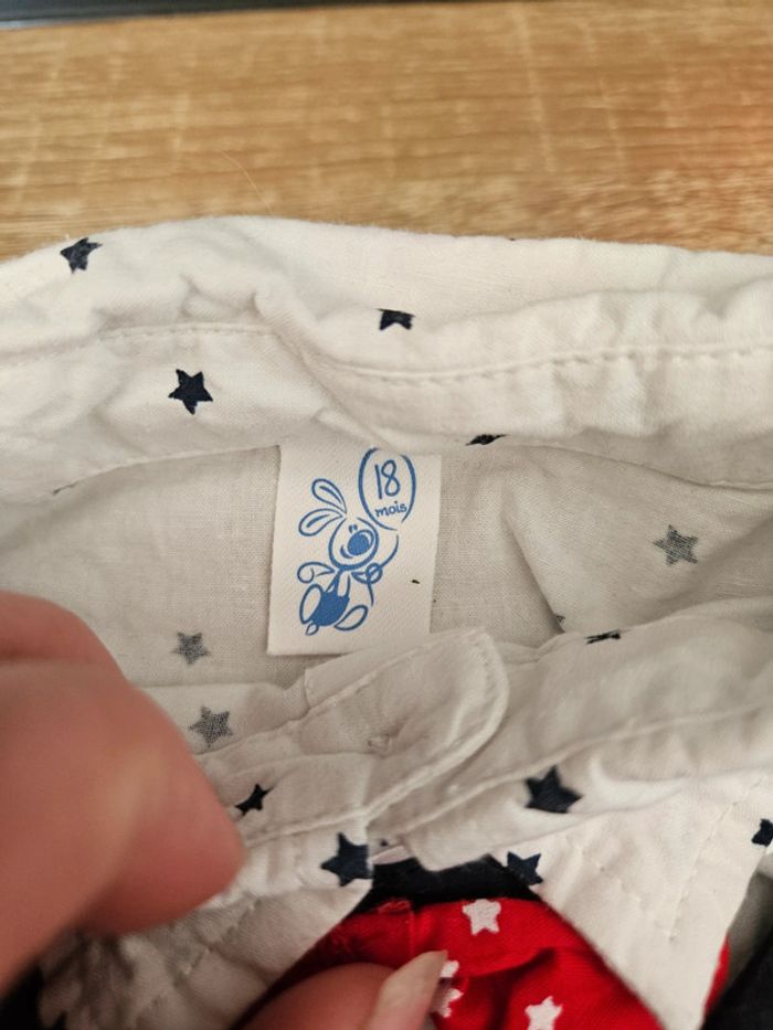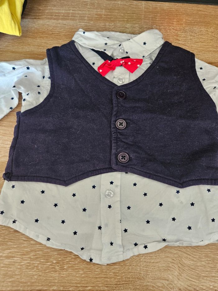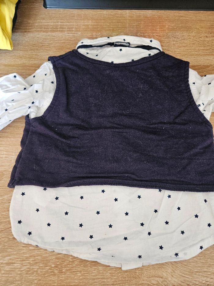 Ensemble de cérémonie intersaison 18 mois (81 cm)en très bon état. 1 pantalon, 1 chemise manches longues, 1 veste (bleu foncé sur la photo) et 1 nœud papillon. Envoi rapide. La tenue sera repassée pour l'envoie.