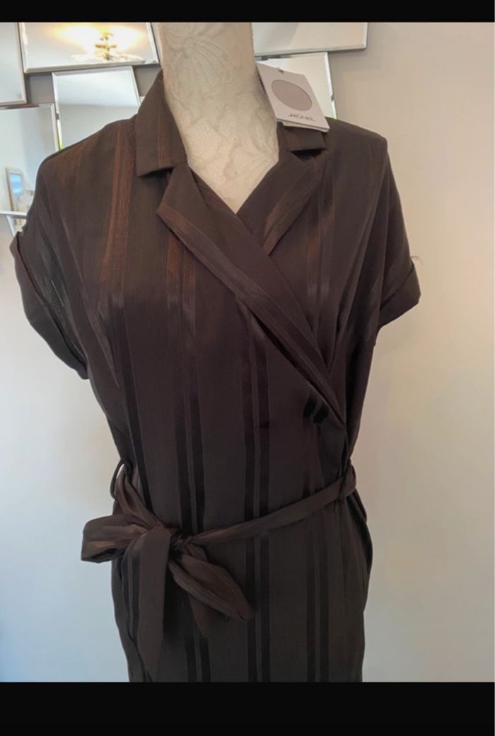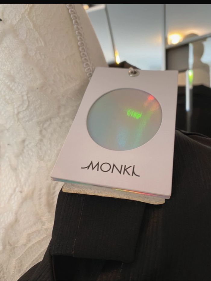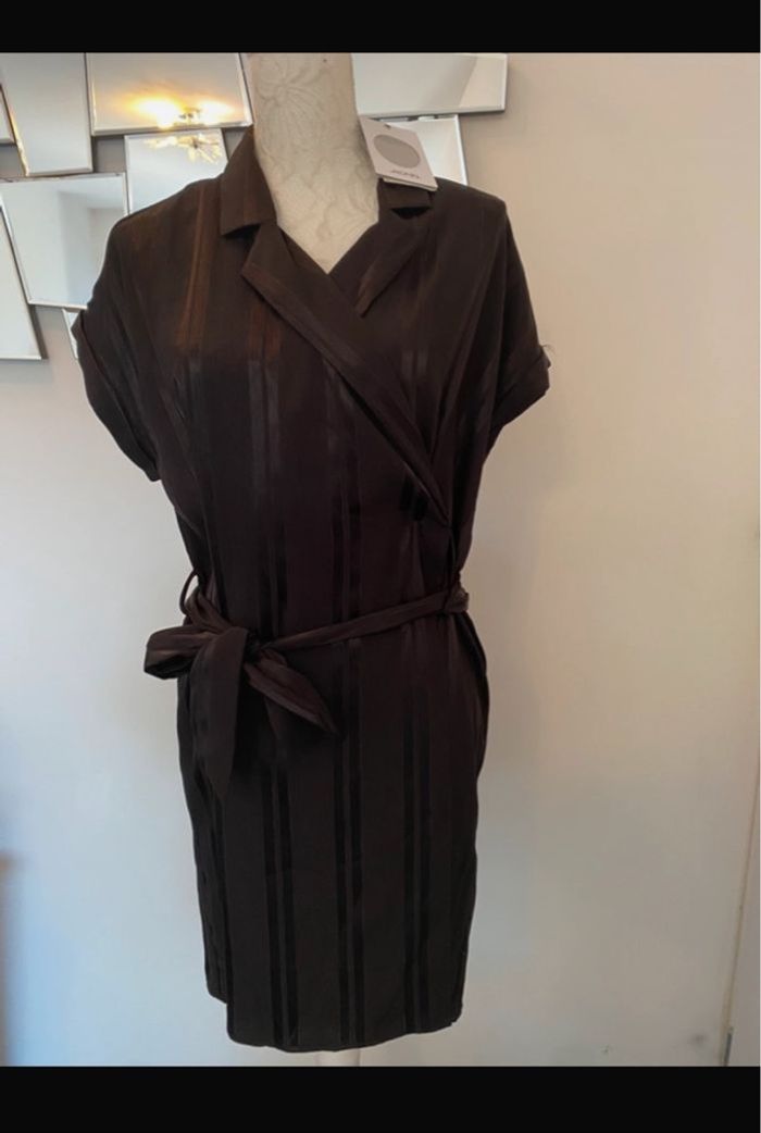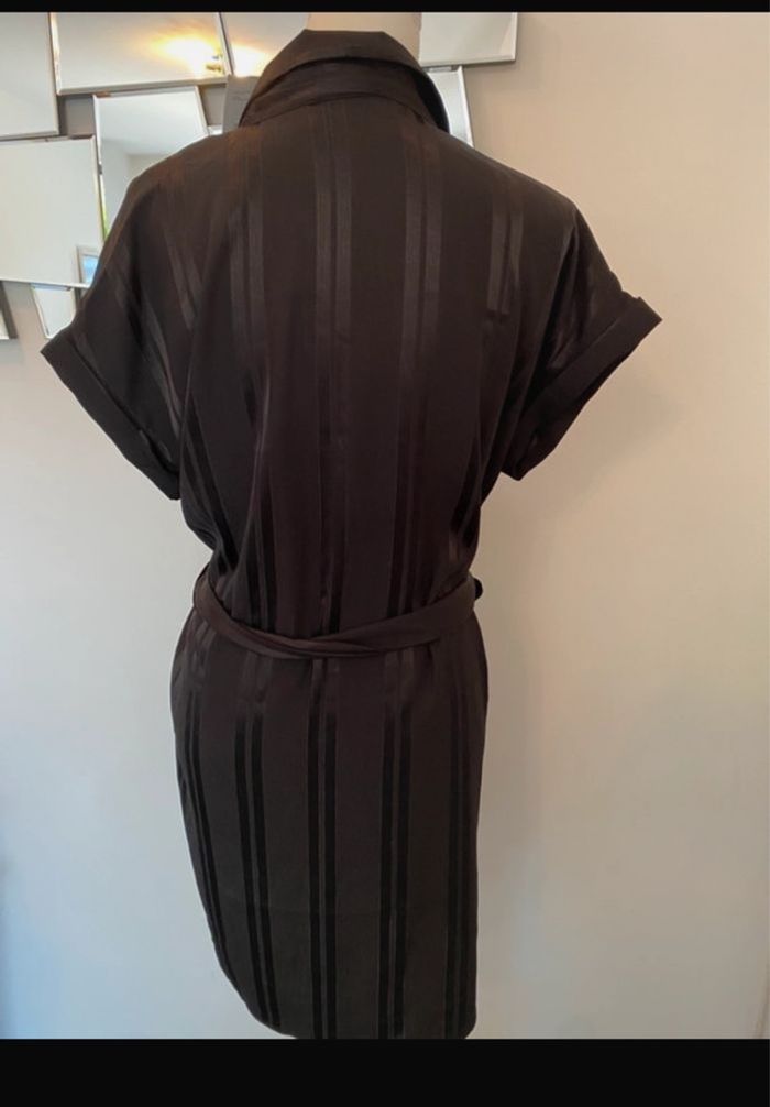 Ajoutez une touche d'élégance moderne à votre garde-robe avec cette robe portefeuille satinée de la marque Monki. Son tissu noir satiné avec de fines rayures verticales ton sur ton lui donne un aspect chic et texturé, parfait pour passer du bureau à une soirée.