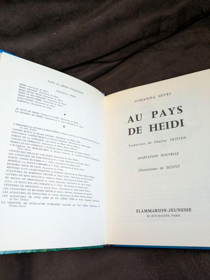 Livre au pays de Heidi. Illustrations de Minot. Vintage, édité en 1958. Heidi, petite orpheline vivant avec son grand-père dans les Alpes, est un personnage de roman créé par la femme de lettres suisse Johanna Spyri en 1880. Elle est devenu un personnage mythique de la Suisse et ses aventures font partie des histoires les plus racontées aux enfants. Mes autres annonces enfants de cet âge #joeypotter91_filleseptans #joeypotter91_fillehuitans #joeypotter91_filleneufans #joeypotter91_filledixans #joeypotter91_filledouzeans #joeypotter91_garçonseptans #joeypotter91_garçonhuitans #joeypotter91_garçonneufans #joeypotter91_garçondixans #joeypotter91_garçondouzeans