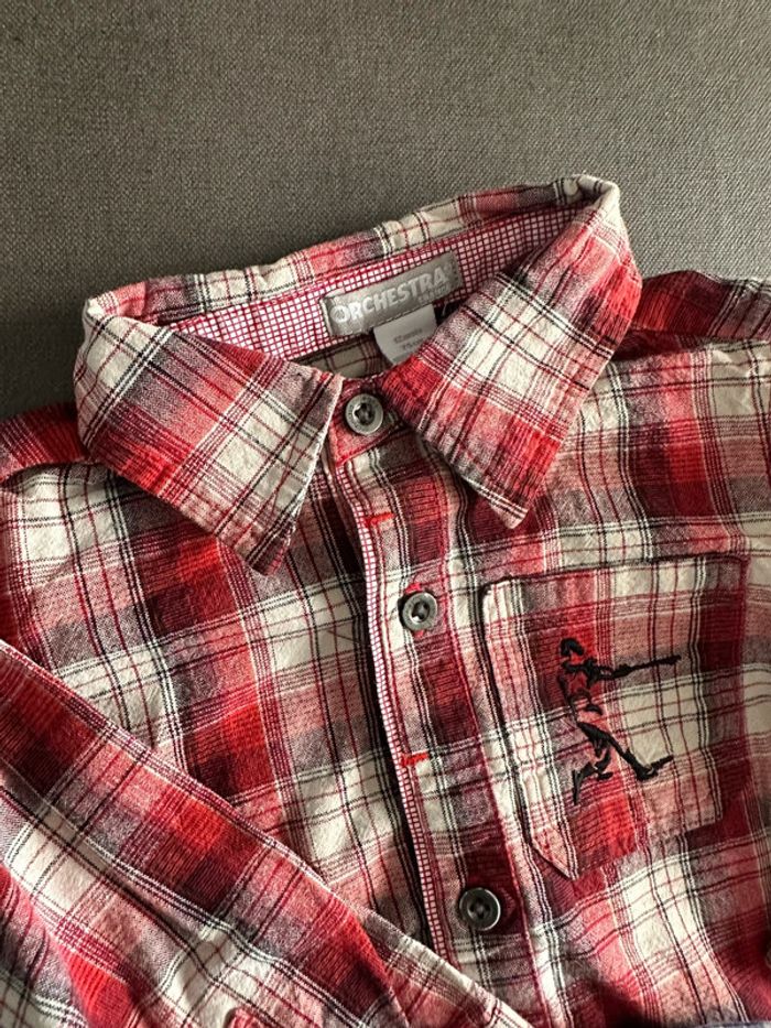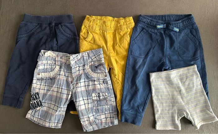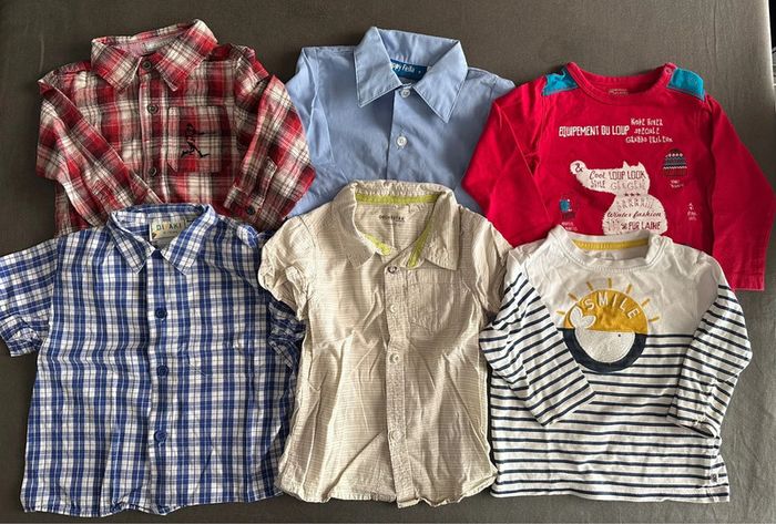 Lot vêtements en très bon état Pantalons, bas de jogging, chemises (2 manches longues et 2 manches courtes) t-shirts manches longues, 2 salopettes Marques: Obaidi, Orchestra, Petit Bateau Envoi rapide et soigné ☺️