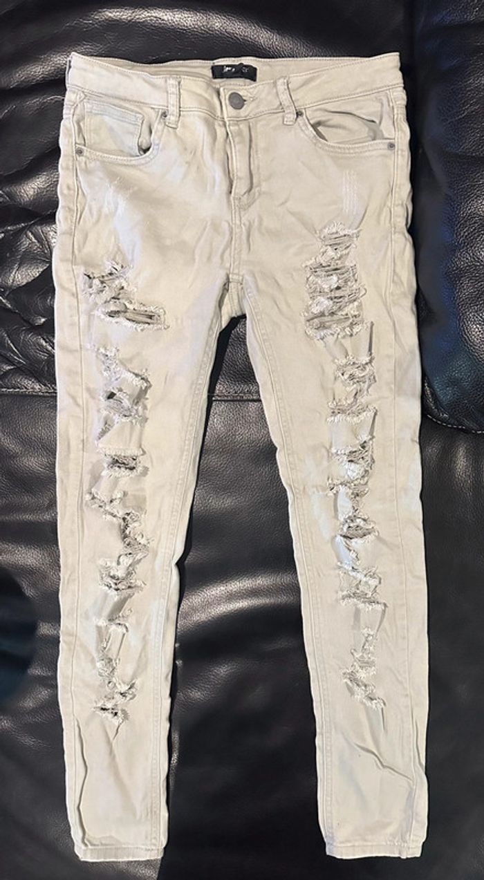 Jean skinny troué blanc cassé - photo numéro 1