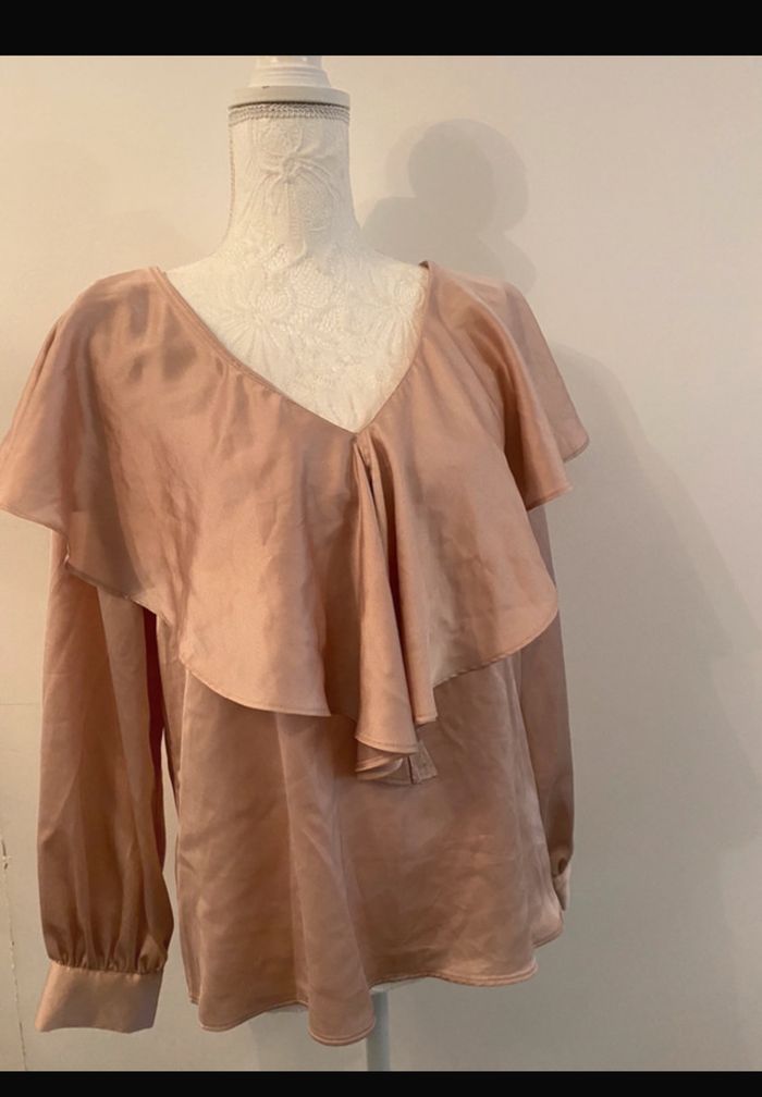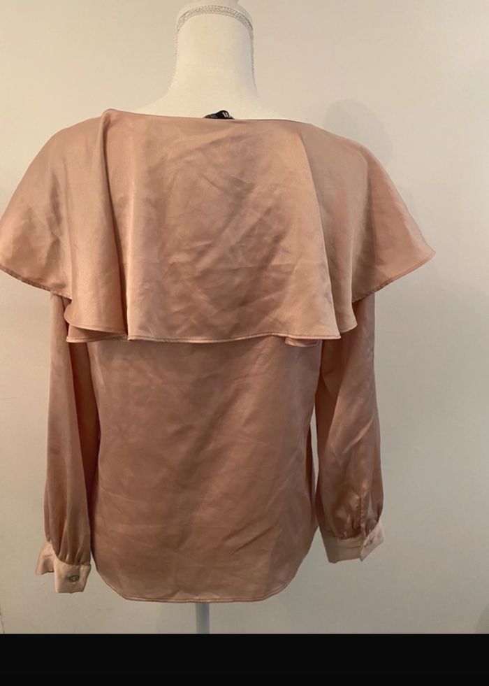👕Taille S = 36 🧼 Très bon état - peu porté 📍 Marque Zara, 👕 Couleur : rose satiné 🔖 blouse avec volant 💯 idéal pour un look chic et décontracté