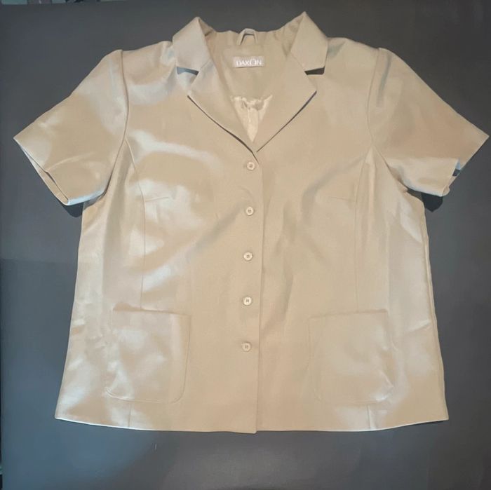 Joli blazer beige manches courtes avec épaulettes jamais porté (avec bouton de rechange) Longueur 72cm Envoi rapide et soigné ☺️